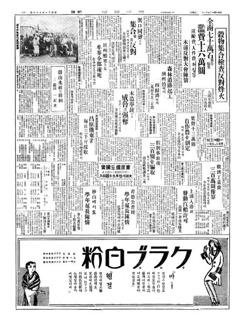 - 穀物集合檢查反對烽火(곡물집합검사반대봉화) 全南七十萬石集合檢査(전남칠십만석집합검사) 濫費十六萬圓(람비십륙만원)