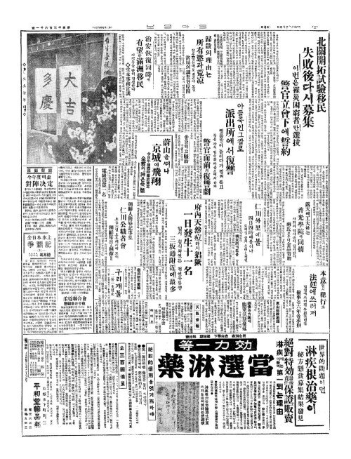 - 府內天然痘(부내천연두)다시 猖獗(창궐) 一日發生十一名(일일발생십일명)