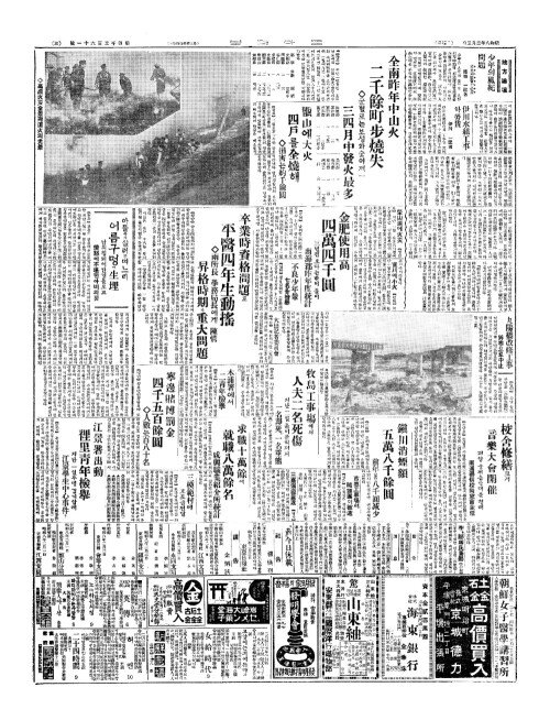 - 全南昨年中山火(전남작년중산화) 二千餘町步燒失(이천여정보소실)