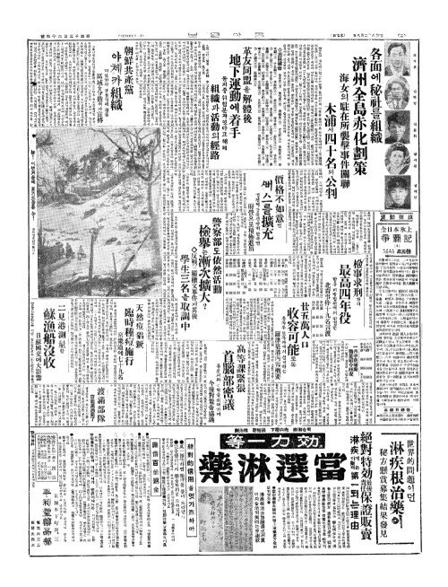 - 各面(각면)에秘社(비사)를組織(조직) 濟州全島赤化劃策(제주전도적화획책)
