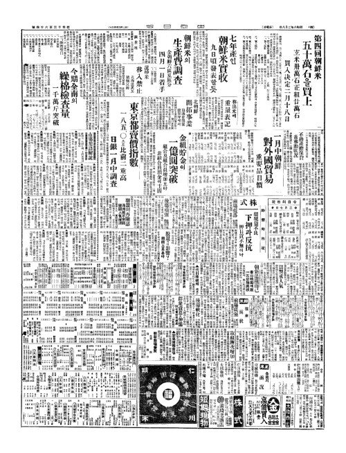 - 七年產(칠년산)인 朝鮮米實收(조선미실수) 九日頃發表(구일경발표)할듯