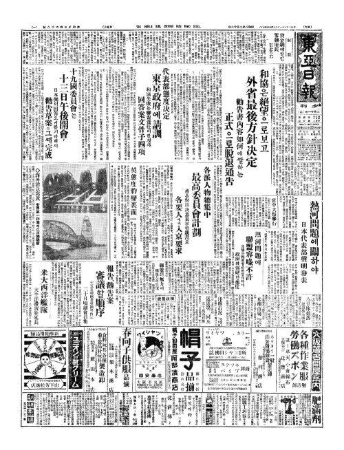 - 熱河問題(열하문제)에關(관)하야 日本代表部聲明發表(일본대표부성명발표)