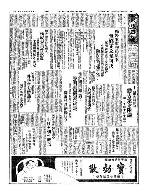 - 滿洲國問題(만주국문제)에對(대)하야 聲明書發表决定(성명서발표결정)