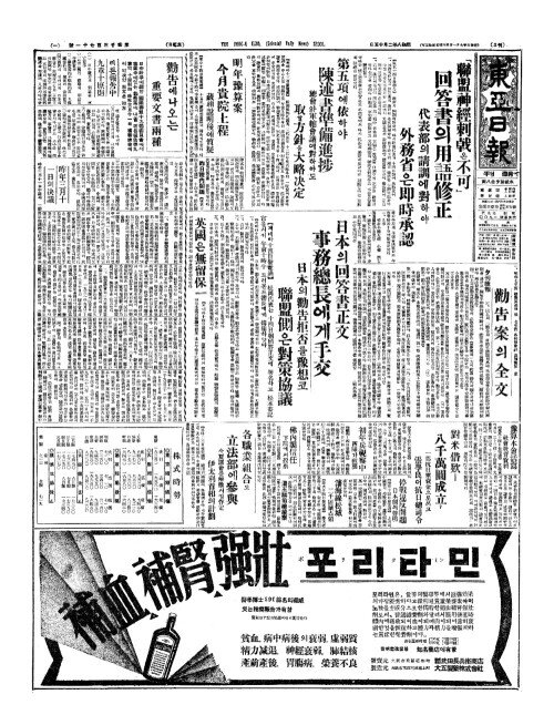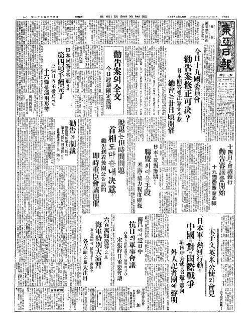 - 今日十九國委員會(금일십구국위원회) 勸吿案修正可决(권고안수정가결)?