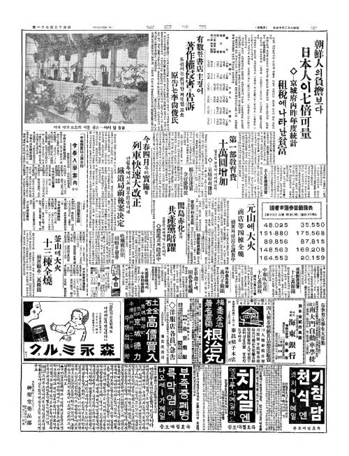 - 朝鮮人(조선인)의負擔(부담)보다 日本人(일본인)이七倍可量(칠배가량)