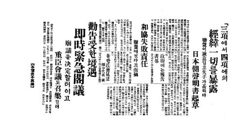 - 日本回答(일본회답)을不顧(부고)하고 第四項手續完了(제사항수속완료)