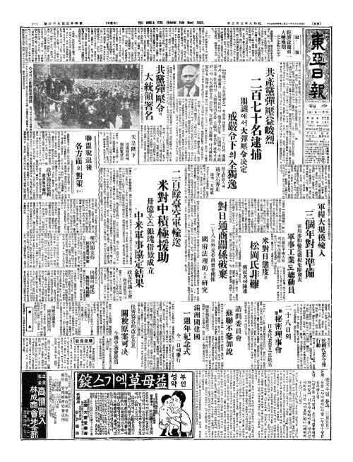 - 共黨彈壓令(공당탄압령)에 大統領署名(대통영서명)