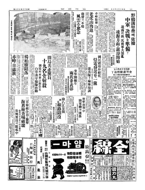 - 張學良(장학량)、孔家莊(공가장)에 飛行塲(비행장)을急設(급설)
