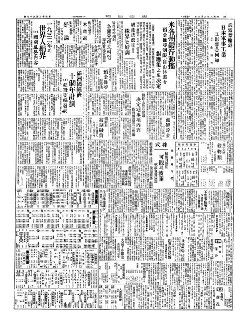 - 米各州銀行動搖(미각주은행동요) 預金推尋制限(예김추심제한)、自由休業(자유휴업)을