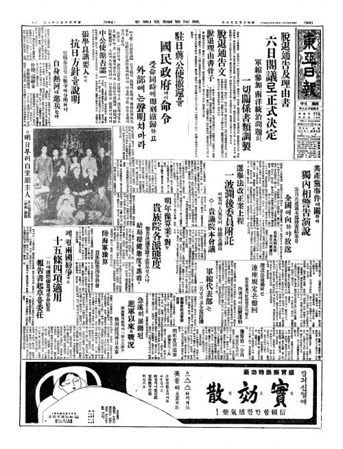 - 駐日蔣公使撤還(주일장공사철환)을 國民政府(국민정부)에서命令(명령)
