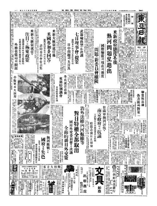 - 日滿軍熱河討伐(일만군열하토벌)에 南京政府(남경정부)에서抗議(항의)