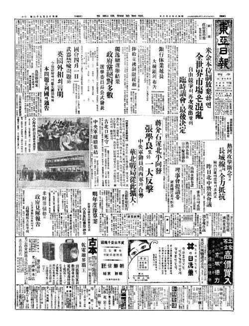 - 張學良慘敗報(장학량참패보)로 軍費公債不成立(군비공채부성입)