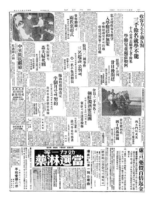 - 收容力(수용력)은不過五割(부과오할) 三千餘名就學不能(삼천여명취학부능)