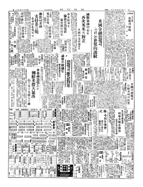 - 米國(미국)의恐慌(공황)과 日財界(일재계)에의影響(영향)