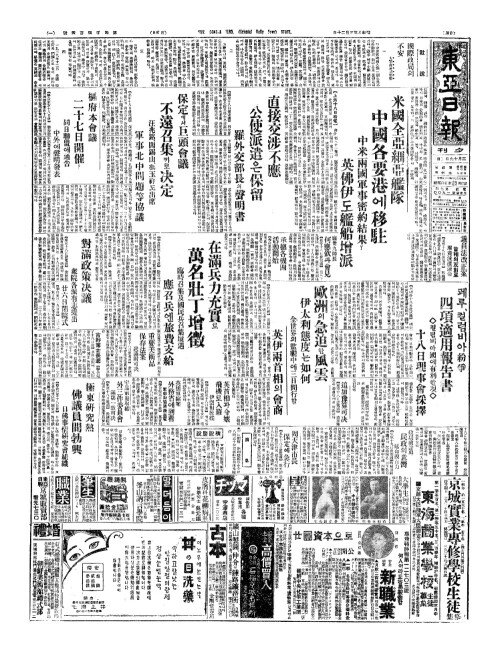 - 米國全亞細亞艦隊(미국전아세아함대) 中國各要港(중국각요항)에移駐(이주)