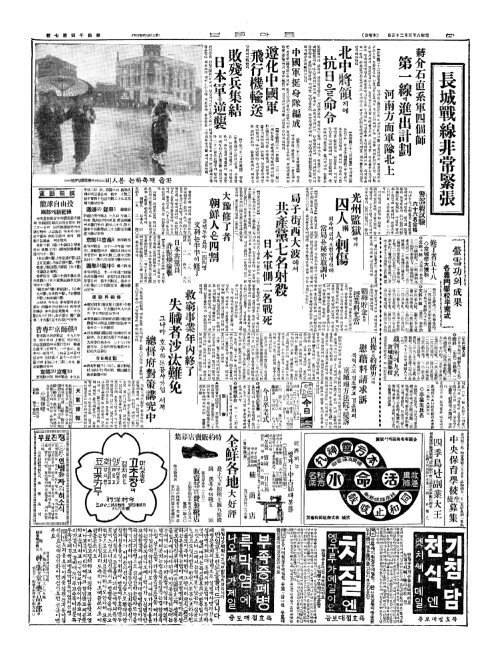 - 長城戰線非常緊張(장성전선비상긴장) 蔣介石直系軍四個師(장개석직계군사개사) 第一線(제일선)에進出計劃(진출계획)