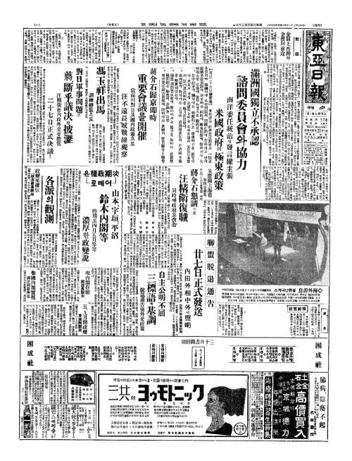 - 滿洲國獨立不承認(만주국독입부승인) 諮問委員會(자문위원회)와協力(협력)