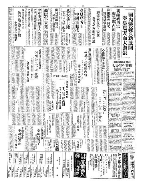 - 關內戰線(관내전선)의新展開(신전개) 秦皇島方面大緊張(진황도방면대긴장)
