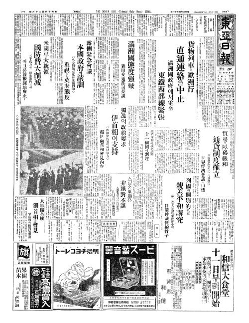 - 滿洲國態度强硬(만주국태탁강경) 森田交通部司長談(삼전교통부사장담)