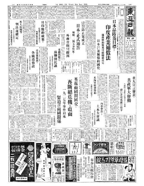 - 麻布關稅引上(마포관세인상) 朝鮮(조선)엔影響薄弱(영향박약)