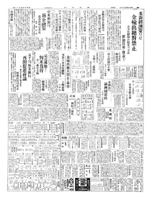 - 米新經濟策(미신경제책)으로 金輸出絕對禁止(금수출절대금지)