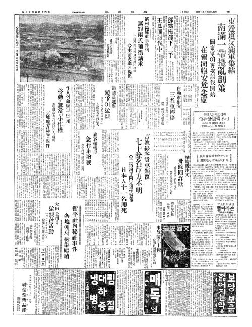- 吉敦線客貨車顚覆(길단선객화차전복) 七十餘名行方不明(칠십여명행방부명)