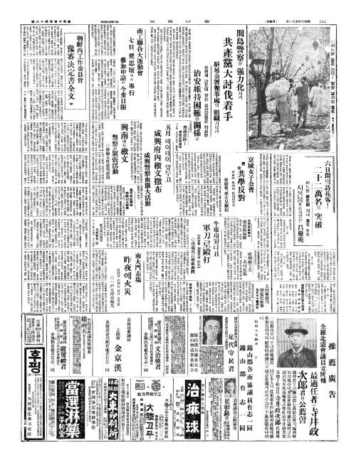 - 間島警察(간도경찰)을 强力化(강력화)시켜 共產黨大討伐着手(공산당대토벌저수)