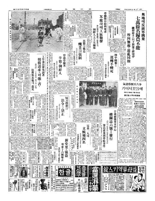 - 奧地(오지)에反滿軍跳梁(반만군도량) 七萬餘名歸農不能(칠만여명귀농부능)