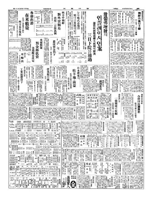 - 米國(미국)인플레案(안) 六月頃裁可(륙월경재가)