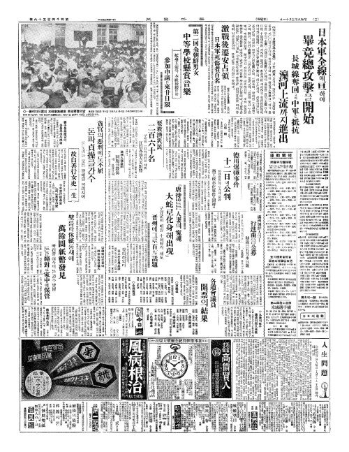 - 日本軍全線(일본군전선)에亘(긍)하야 畢竟總攻擊(필경총공격)을開始(개시)