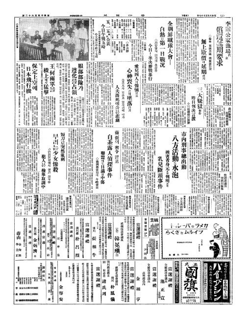 - 朝鮮物產奬勵會(조선물산장려회) 定期大會開催(정기대회개최) ◇今夜中央基靑會舘(금야중앙기청회관)에서