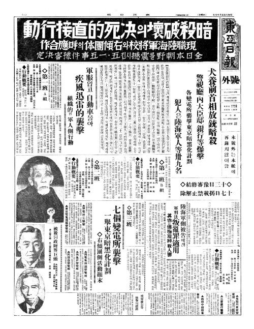 - 五(오)、一五事件公表(일오사건공표) 今日午後五時(금일오후오시)