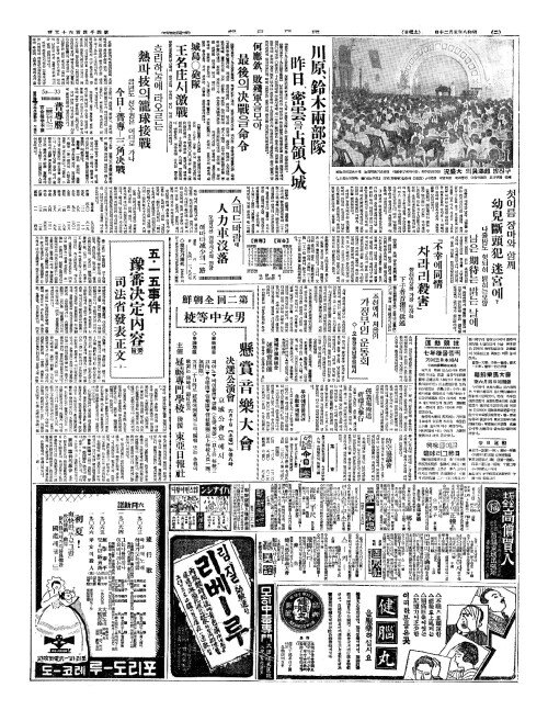 - 川原(천원)、鈴木兩部隊(령목양부대) 昨日(작일)、密雲(밀운)을占領入城(점영입성)
