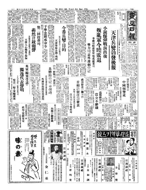 - 號外發行(호외발행) 天津兵變(천진병변) 勃發(발발)로本社(본사)는今二十(금이십) 不再錄號外(부재록호외)를發行(발행)하엿읍니다