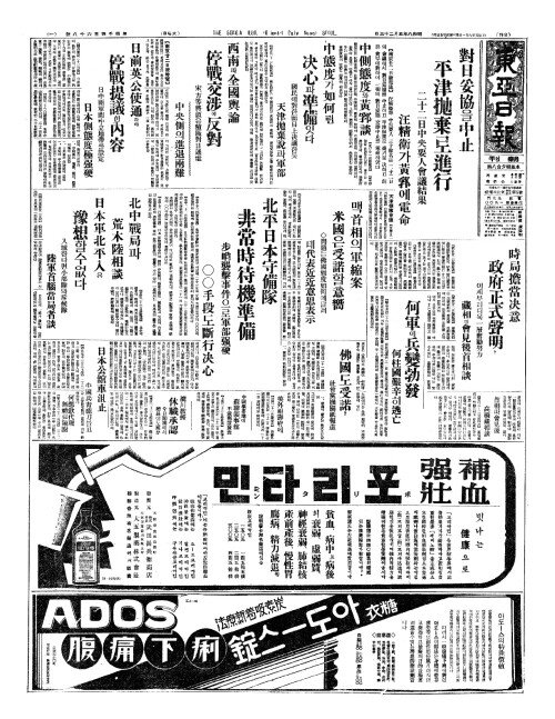 - 對日妥協(대일타협)을中止(중지) 平津抛棄(평진포기)로進行(진행)