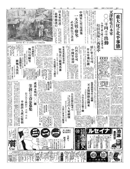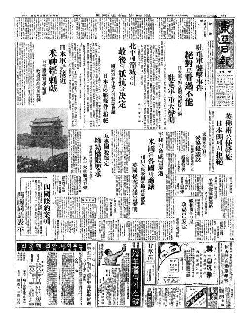 - 日本軍北平接近(일본군배평접근) 米神經(미신경)을剌戟(날극)