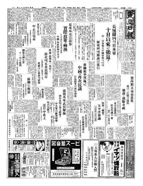 - 長城關內(장성관내)의日本軍(일본군) 十日以來(십일이내)로撤退(철퇴)?