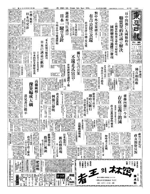 - 對中外交策確立(대중외교책확립)코저 有吉公使(유길공사)를召還(소환)