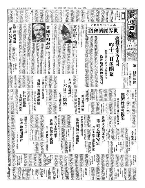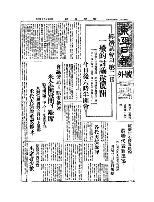 - 世界經濟會議(세계경제회의)에서 戰債問題討議確實(전채문제토의확실)