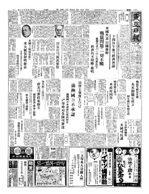 - 十四日午後(십사일오후)의經濟會議(경제회의) 米國代表(미국대표)헐國務卿(국무경) 戰債問題(전채문제)에 一切不觸(일절부촉)