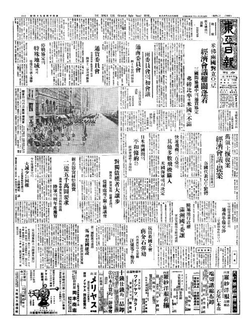 - 米佛兩國對立(미불량국대입)으로 經濟會議難關逢着(경제회의난관봉저)