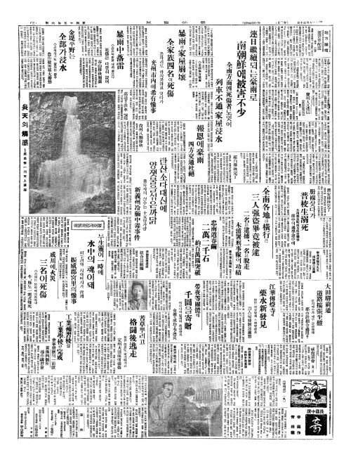 - 全南一道(전남일도)의浸水家屋(침수가옥) 昨日現在九百餘戶(작일현재구백여호)