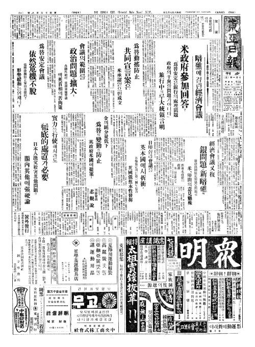 - 經濟會議又復(경제회의우복) 銀問題(은문제)로新暗礁(신암초)에