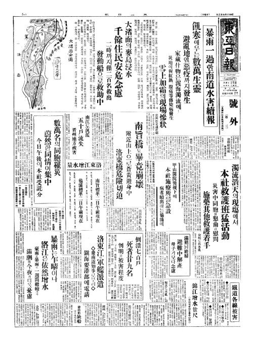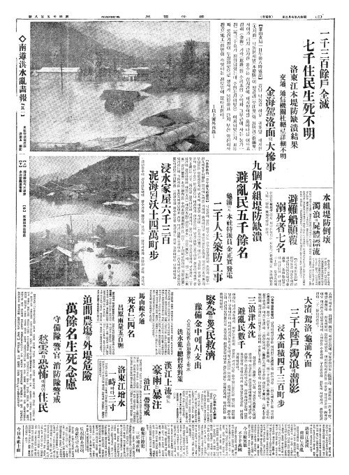 - 南道四大江畢竟汎濫(남도사대강필경범람) 五道(오도)에亘(긍)한稀有(희유)의慘害(참해)