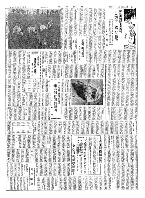 - 三千里(삼천리)에 豪雨(호우)나려 移秧(이앙)을全部完了(전부완료)