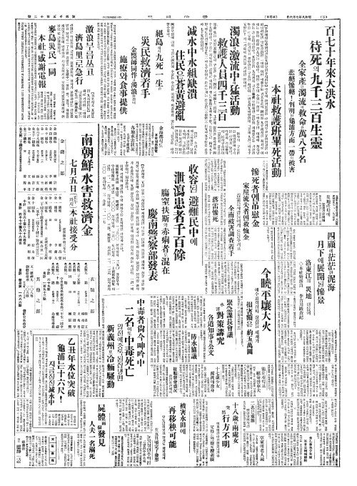 - 各地水害狀况(각지수해상황) 七日午前現在(칠일오전현재)