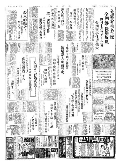 - 各地警察(각지경찰)에指名手配(지명수배) 全朝鮮(전조선)에檢擧旋風(검거선풍)
