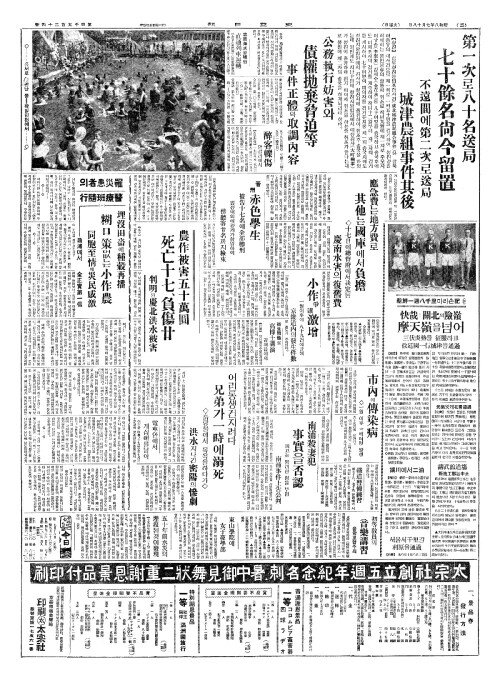 - 農作被害五十萬圓(농작피해오십만원) 死亡十七(사망십칠)、負傷廿(부상입)