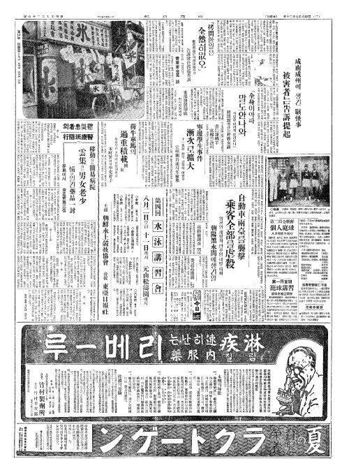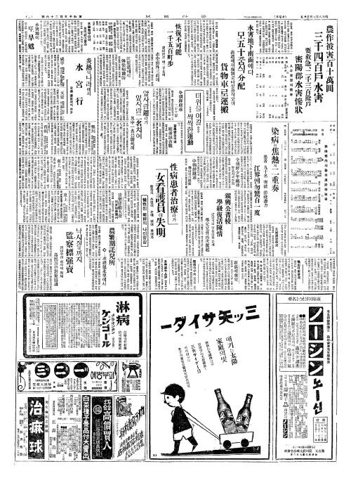 - 農作被害百十萬圓(농작피해백십만원) 三千四百戶水害(삼천사백호수해)