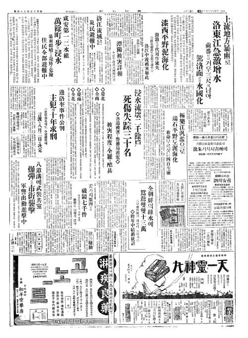 - 浸水流壞二千餘戶(침수류괴이천여호) 死傷失踪三十名(사상실종삼십명)